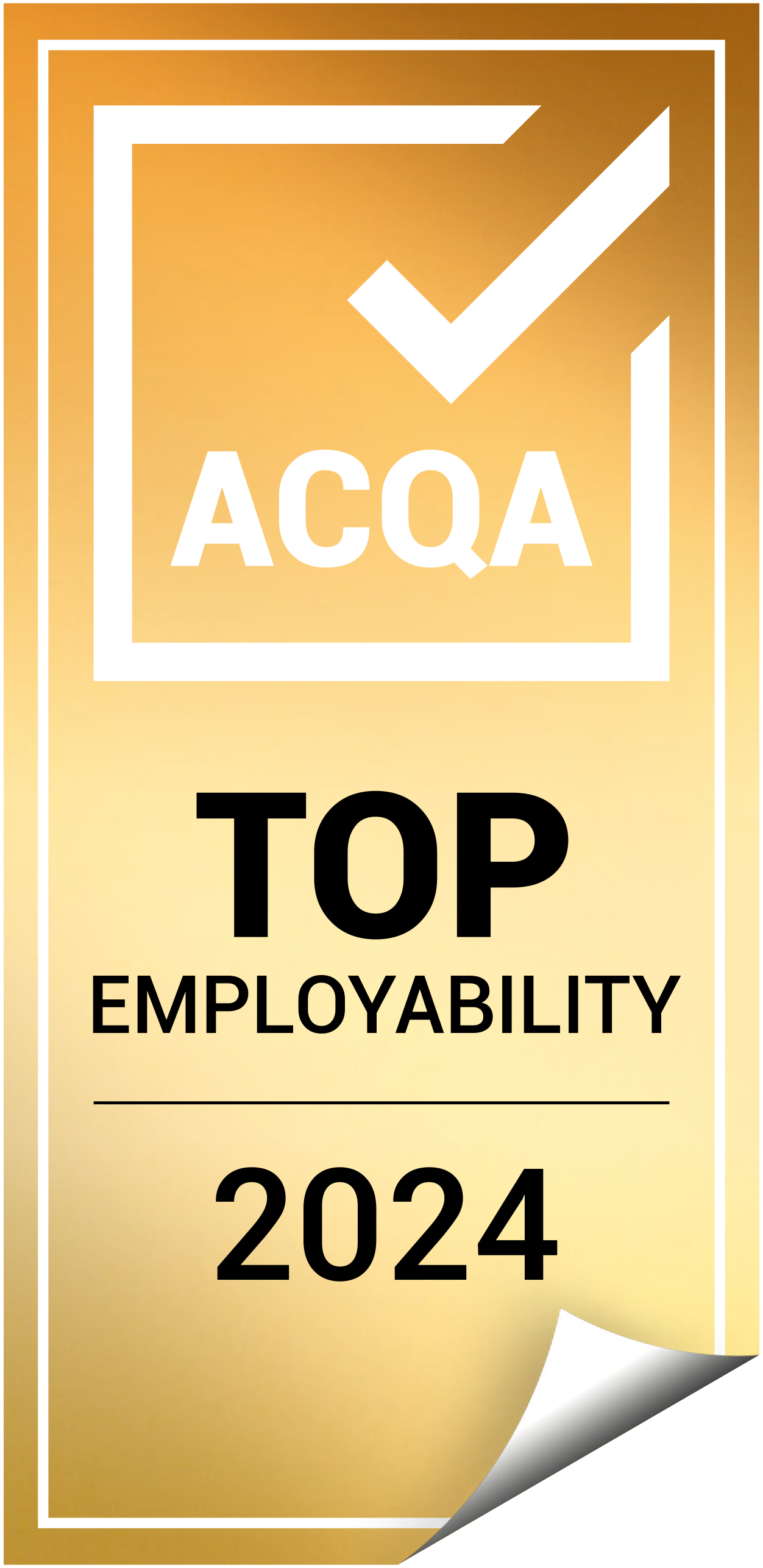 Das Siegel Top Employability steht für Studienprogramme, die ihre Absolventinnen und Absolventen durch praxisnahe Lehre, relevante Inhalte und starke Industrievernetzung bestmöglich auf den Arbeitsmarkt vorbereiten.
